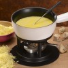 Pour chauffer, l’idéal c’est la bougie. Elle permet de maintenir une chaleur homogène et évite de faire bouillir la fondue. En effet, elle devrait rester sous les 50 °C et frémir uniquement. Avec un brûleur uniquement, il est plus difficile de régler la flamme.